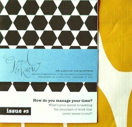 The Good to Know Project is full of advice + inspiration from artists/illustrators/designers on creativity, business and life. This issue has 29 artists who shares about the topic of how they manage their time, and includes some of their illustrations as well!